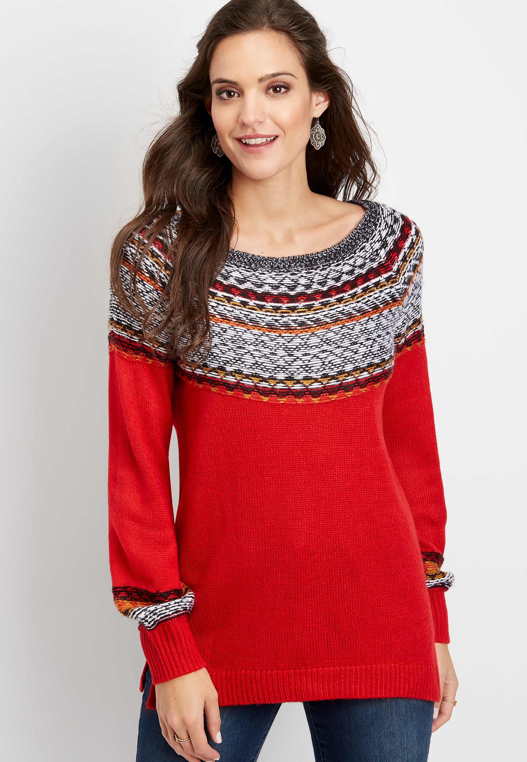 Soft knit Length. Womens Fair Isle Tunic Sweater. Midweight 26 14 long Available in.