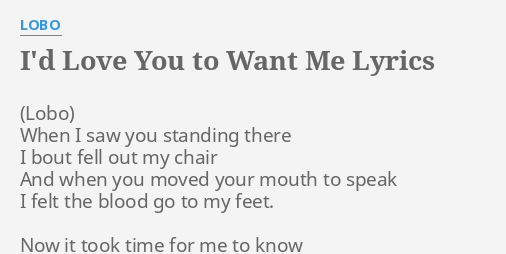 Id Love You to Want Me is a song by American singer-songwriter Lobo. Cover art synopsis sequels reviews awards publishing history genres and time period. When I saw you standing there Ibout fell off my chair And when you moved your mouth to speak I felt the blood go to my feet Now it took time for me to.