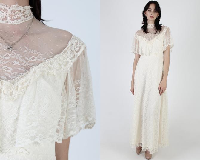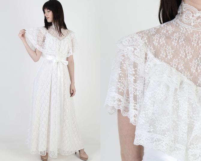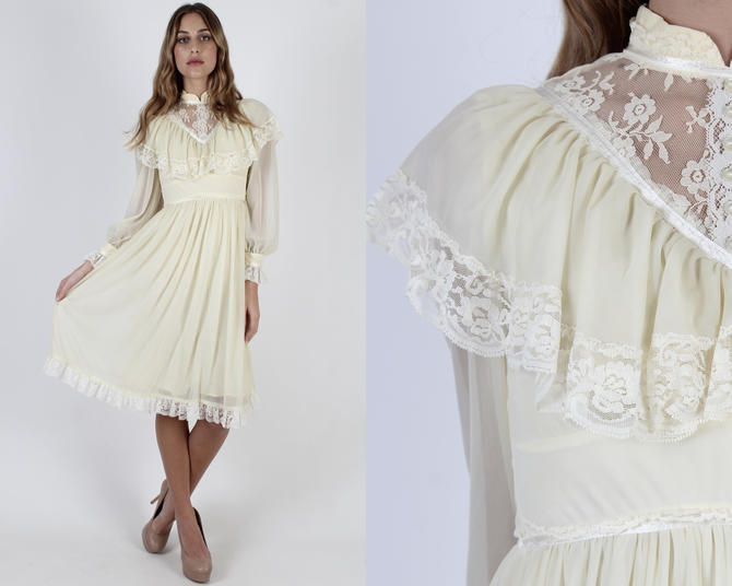 Absolutely Beautiful 60s dress. Vintage womens 70s lace boho prairie wedding dress size 8 10.